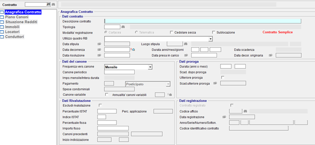 Il programma consente il caricamento guidato dei dati dei contratti di locazione (data di decorrenza, durata, scadenza, importo del canone, eventuali proroghe e rivalutazioni, cedolare secca ecc.), la creazione e l'aggiornamento della situazione reddituale per la predisposizione della dichiarazione dei redditi.